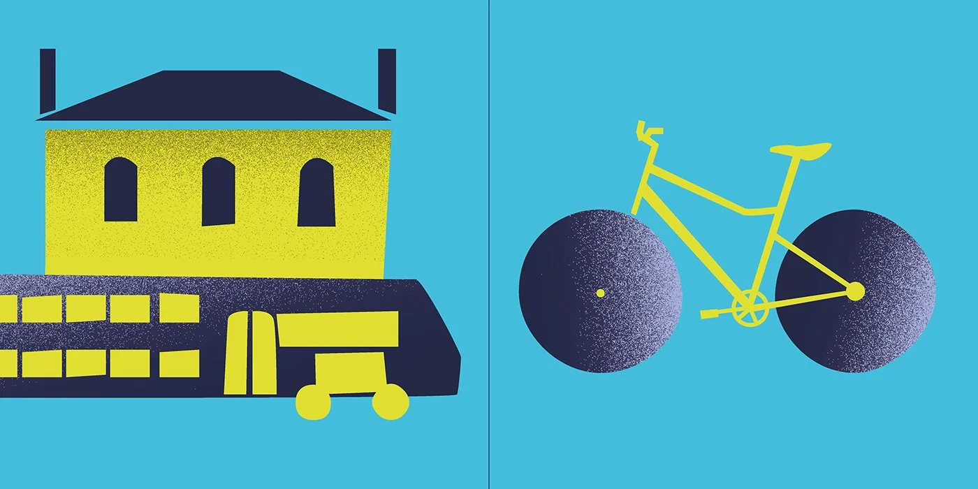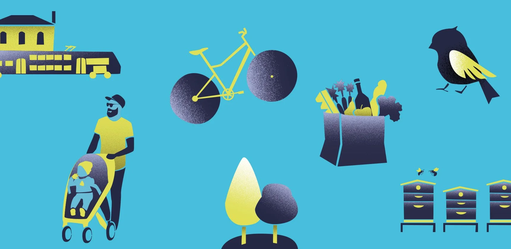 Des lettres ouvertes en mouvement pour signifier l’évolution, le renouvellement… Des couleurs attractives et fraîches pour dynamiser le rendu. Des illustrations façon collages pour apporter un côté citadin et accessible.
