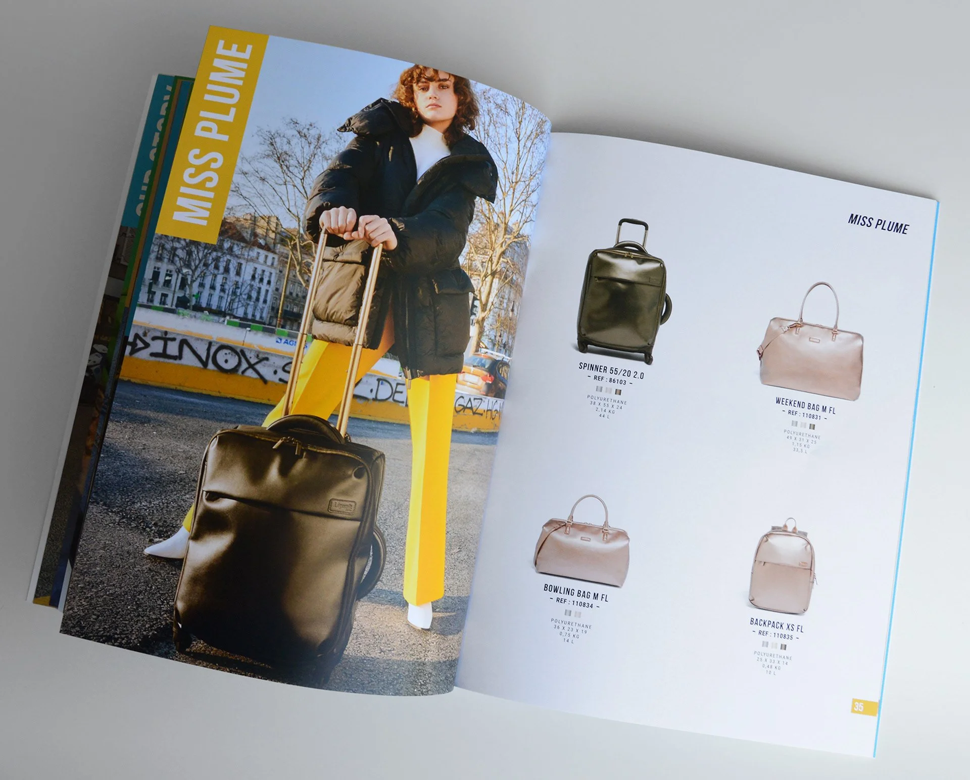 Création de l'identité éditoriale pour le Dealer catalogue Fall / Winter 2019 de Lipault, la jeune marque de bagagerie parisienne, chic et colorée, du Groupe Samsonite.